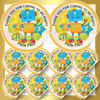 Please let us know your preferred text for the top of the sticker as well as your child's name for the lower line text.