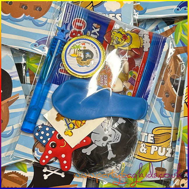 Each pirates pre-filled party bag contains at least 5 party bag toys and party bag sweets